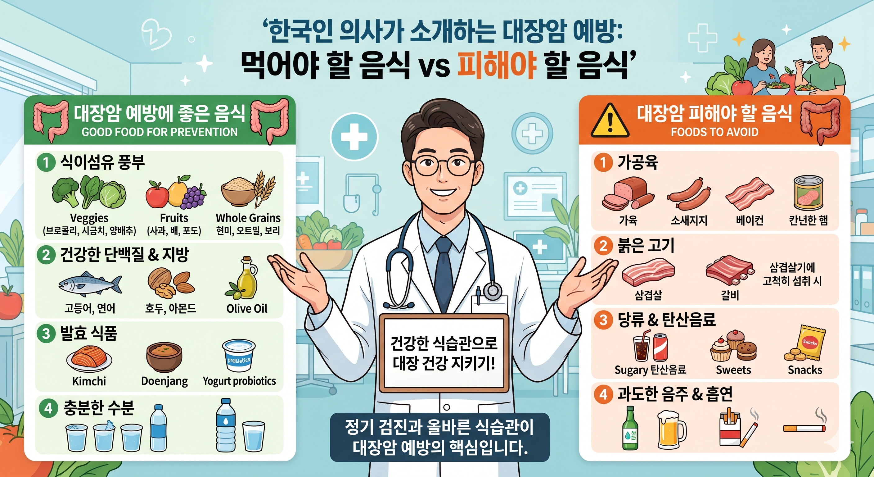 대장암 예방에 좋은 음식 vs 피해야 할 음식 — 국내 연구 기반 완전 정리
